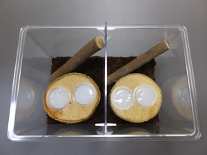 カブトムシ、クワガタの成虫や幼虫の飼育ケース、コバエシャッター(小)の専用仕切り板です。 セパレータを使用することにより、ケース内を2つに仕切り、クワガタのオスとメスをペアで飼育することができます。 オスのサイズが60mmを下回るペアを飼育する際にケースの中央に差し込みご使用ください。 ◆コバエシャッター小ケース用セパレータを使った飼育例です。◆